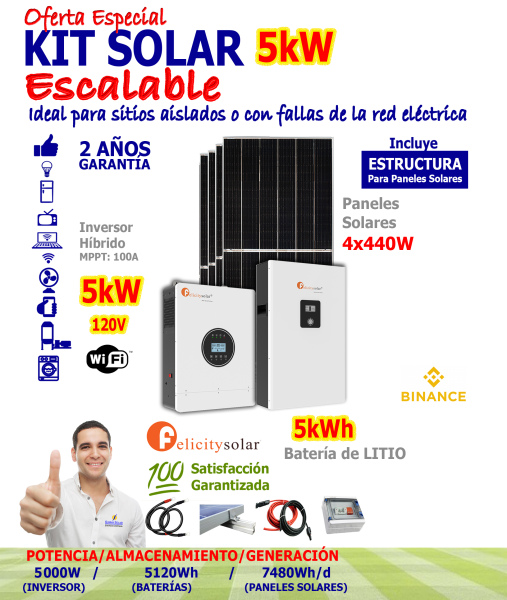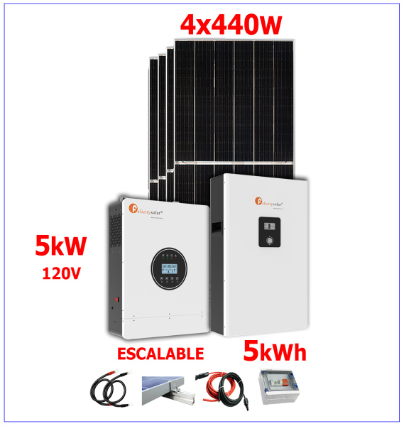 Kit Solar Modular de 5kW con banco de baterías de 5120Wh y 1760 en paneles solares