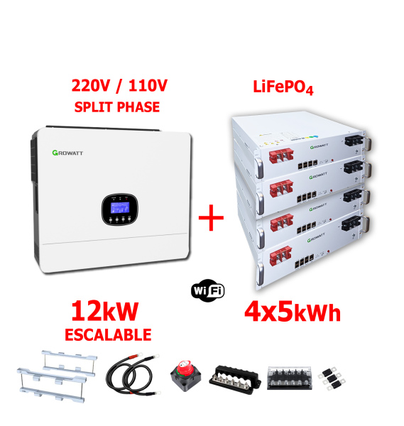 Respaldo Eléctrico 12kW Growatt con 20kWh en baterías de LITIO Growatt