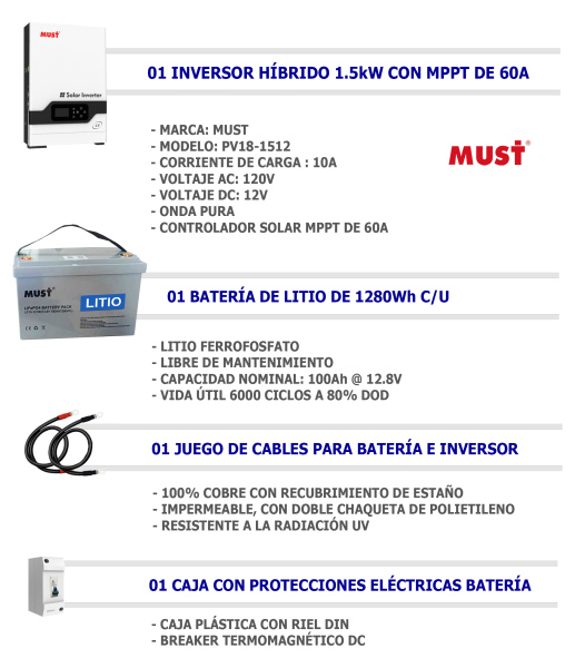 Respaldo Eléctrico Must 1500W con batería de LITIO 12V 100Ah